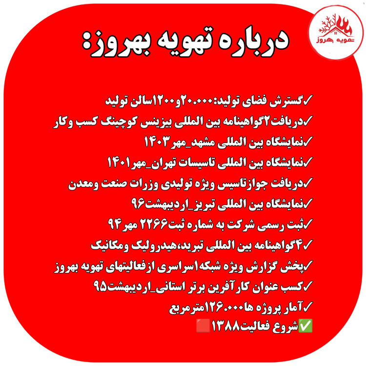 تهویه بهروز جهت حمایت از شما عزیزان ، به مشتریانی که مستقیما با واحد فروش شرکت تماس میگیرند هیچگونه تخفیفی لحاظ نمیکند و آنها را تشویق می کند که با عاملیتها تماس گرفته و از شما خرید نمایند .